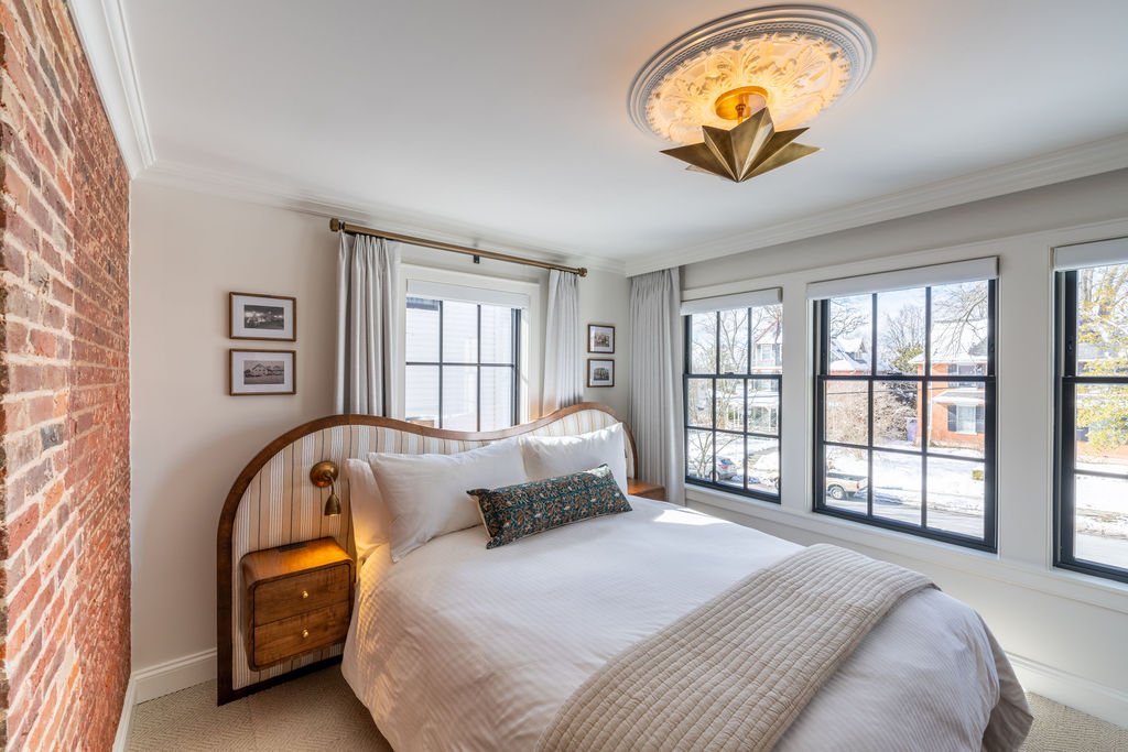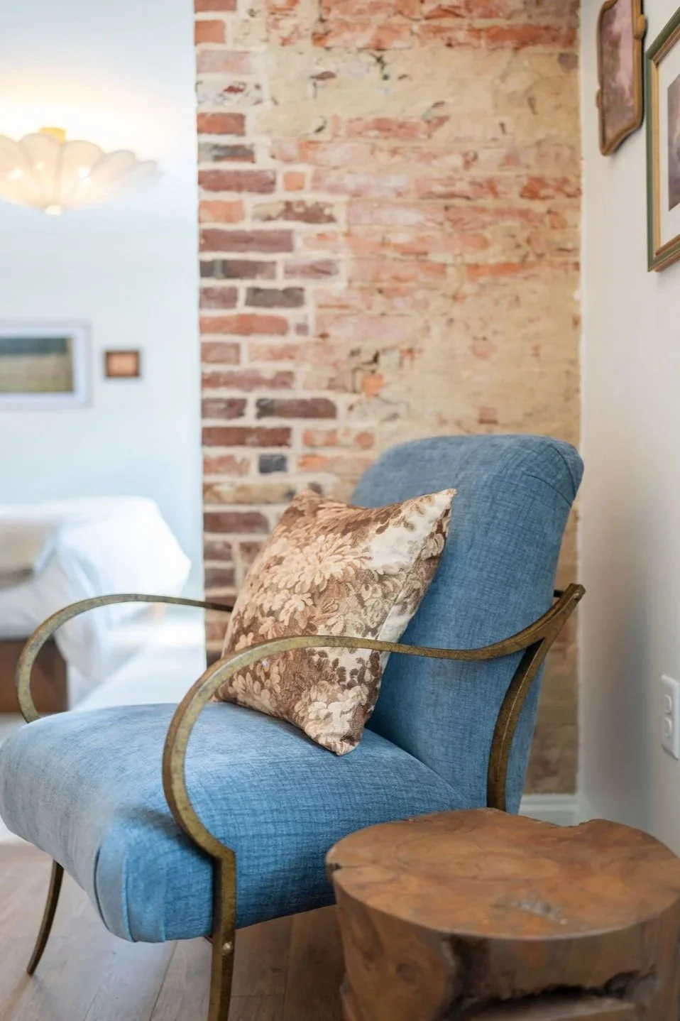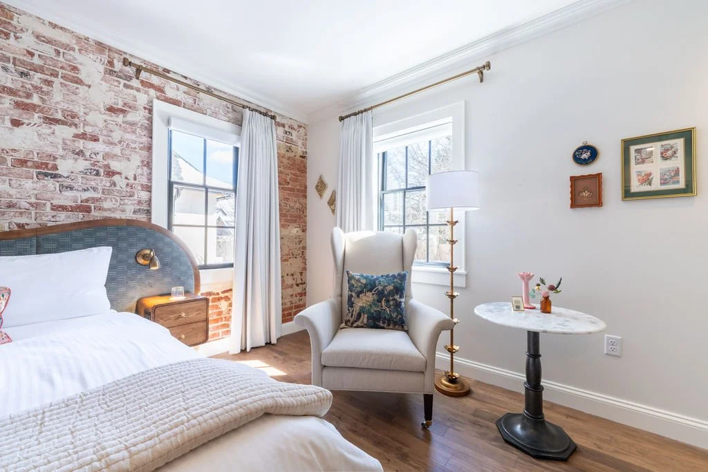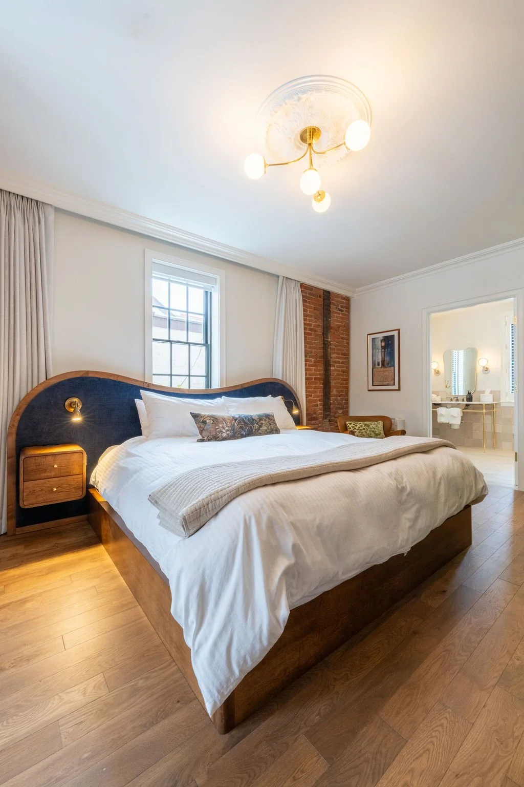 Exposed brick walls and timeless architectural details give The Francis its character, blending the history of the building with modern comfort.